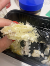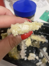 Заказали сегодня на доставку рыбку в кляре …. Рыбка внутри вкусная, а вот кляр … можно было хотя бы перемешать муку 😉 ну и поджарить , либо поменьше его сделать . Итог видите на картинке . Ну и «цезарь» с майонезом -шедеврально😂👍 я понимаю , что цена не большая , но хотелось бы пообедать вкусно , а не как пришлось